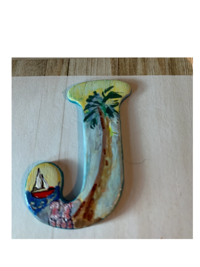 Obviously, Joanie starts with J, and so does a friend's of the same name. She loves sailing and lives in FL. I painted this wood letter and made it into a pin as a gift for her. I like it so much, (pardon me for liking my own work,) I decided to use here.